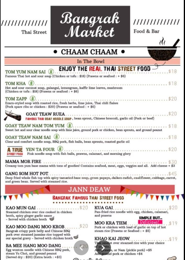 Welcome to Bangrak Market, where we bring you the best of Thai street food in a vibrant and relaxed setting. Whether you’re craving savory noodles, fresh salads, flavorful skewered meats, or a refreshing drink, our menu has something for everyone. Enjoy your meal in our welcoming space, or order online for takeout and no-contact delivery. Discover the bold, authentic flavors of Thailand right here in Seattle!